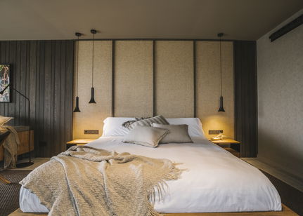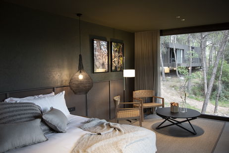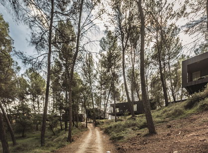 Zona conformada por 15 cabañas entre encinas y pinos. La parte más frondosa del bosque donde las sombras de los árboles y los aromas de sotobosque confieren una conexión especial con la naturaleza. Tres de las 15 cabañas son dobles y están comunicadas entre sí dando la opción a familias o amigos a convivir en dos cabañas independientes pero con la posibilidad de conectarlas.
